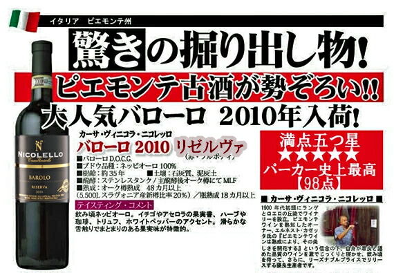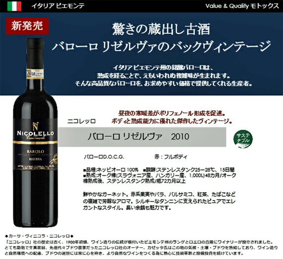 カーサ・ヴィニコラ・ニコレッロ・バローロ リゼルヴァ 2010