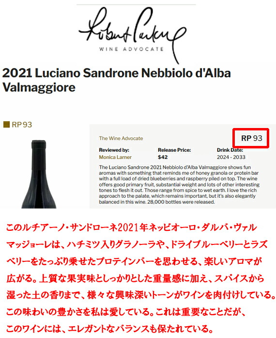 さらにパーカーは、100点満点を2回獲得したのを筆頭に99点-2回、98点-5回獲得の偉大なる[ルチアーノ・サンドローネ]!!