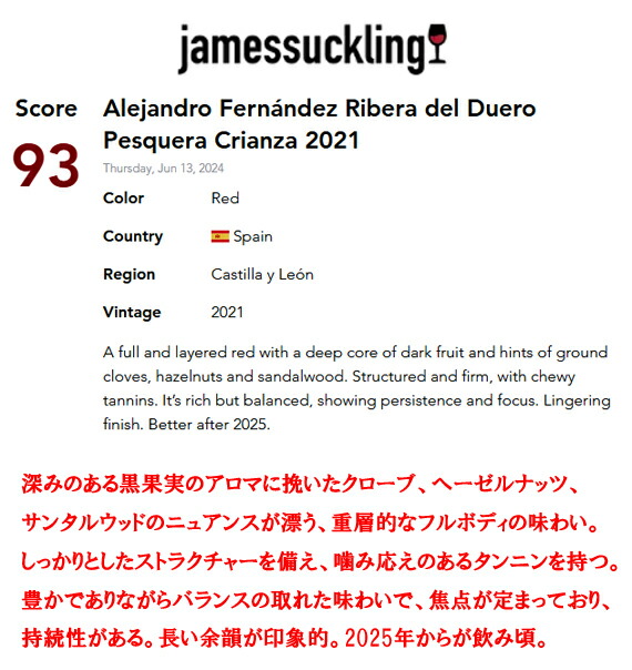 【これは驚異的な、見事な完成度の、フルボディワインで、傑出のリッチさと強さを持っている。】