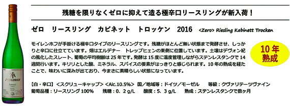 [モイレンホフ・ゼロ・リースリング・カビネット・トロッケン 2016]