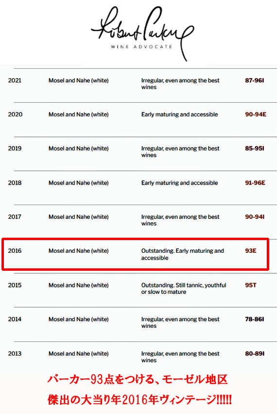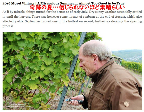 と大絶賛した、モーゼルワイン史上最高のヴィンテージと言われる、1997年を彷彿とさせる40年に一度の2016年ヴィンテージ!!!!
