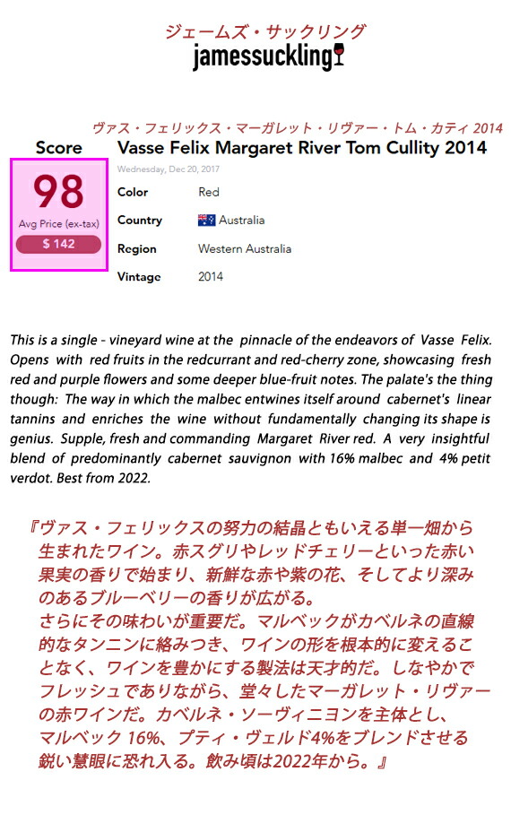 産地:西オーストラリア、マーガレット・リヴァー