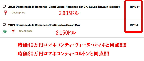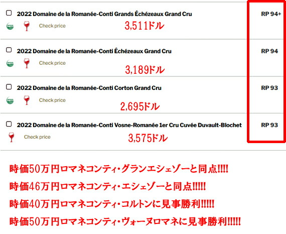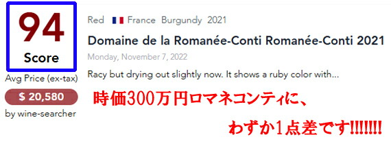 ロバート・パーカーでは、時価50万円ロマネコンティ・ヴォーヌロマネに見事勝利!!!!!