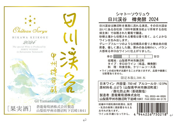 [シャトー蒼龍・日川渓谷・甲州樽発酵 2024]