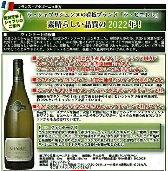 [ラ・シャブリジェンヌ・シャブリ・ラ・ピエレレ 2022] !!!!!!