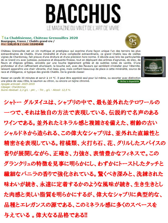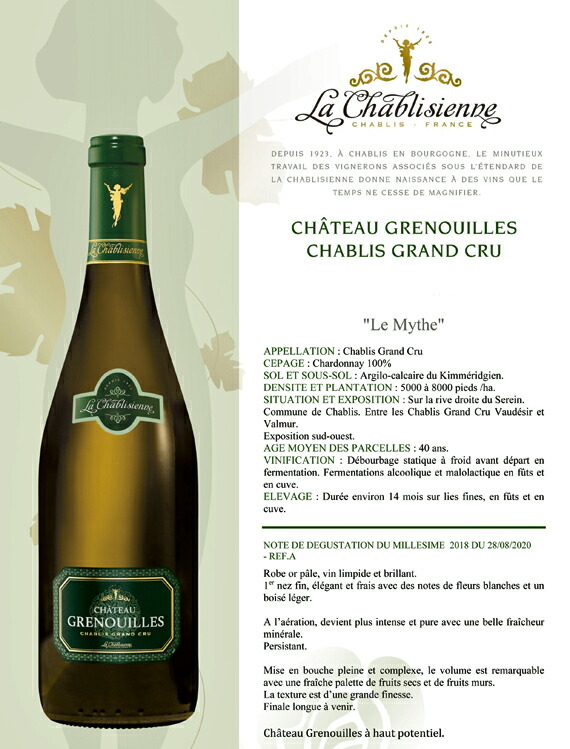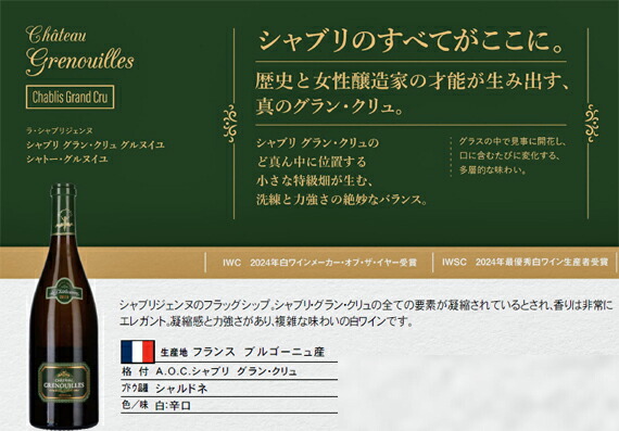 [ラ・シャブリジェンヌ・シャブリ・グランクリュ・グルヌイユ・シャトー・グルヌイユ 2022]