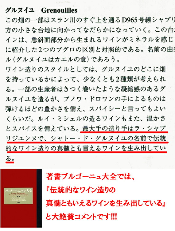 この特級シャブリ[シャトー・グルヌイユ]については、