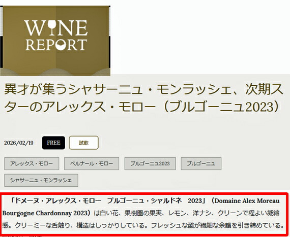 [ドメーヌ・アレックス・モロー・ブルゴーニュ・シャルドネ 2023]