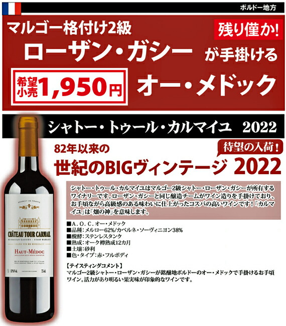60年に一度の歴史的超大当たり[オー・メドック]が二度とない超大特価1880円!!!!!!