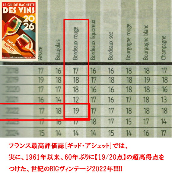 フランス最高評価誌[ギッド・アシェット]1945年からの観測史上、わずか6度しか記録されなかった超高得点【19/20点】獲得!!!!