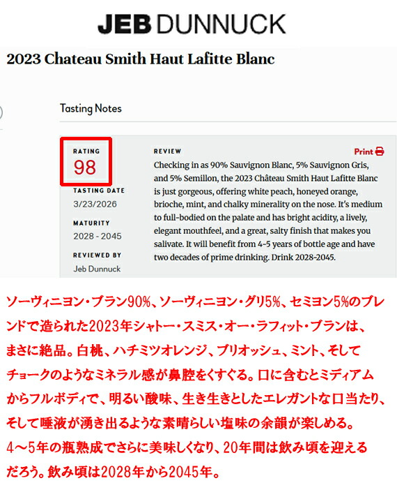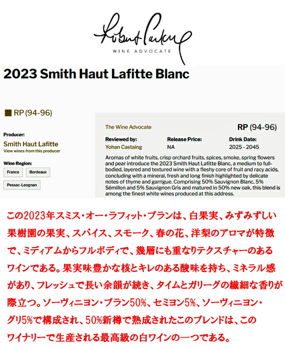 著書[死ぬ前に飲むべき1001ワイン]で【ラフィット】【マルゴー】【最高の白グラーヴ】夢のような言葉とともに大絶賛!!!