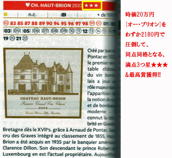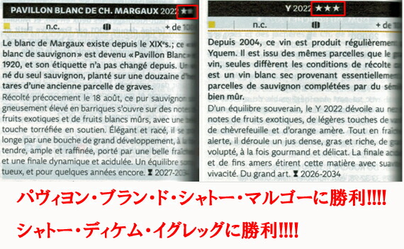 さらには、あの[シャトー・マルゴー]]が造りし、時価8万円もの辛口白ワイン[パヴィヨン・ブラン・ド・シャトー・マルゴー]には圧勝して、