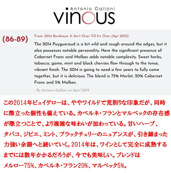 [シャトー・ピュイグロー 2014]