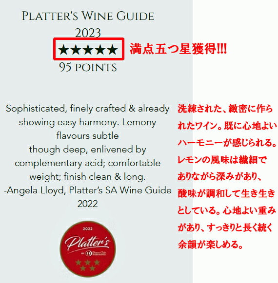 『ほこりっぽい、塩っぽい香りが、肉厚で贅沢な果実味の上に天のように広がる。オークのアロマの素晴らしい融合が鼻の周りに残る。 その味わいは集中しており、信じられないほど繊細なオーク樽の風味と簡潔な酸味がある。スパイスがミネラルと絡み合い、永遠に続くチョーキーなメロンの香りが周りを渦巻く。』