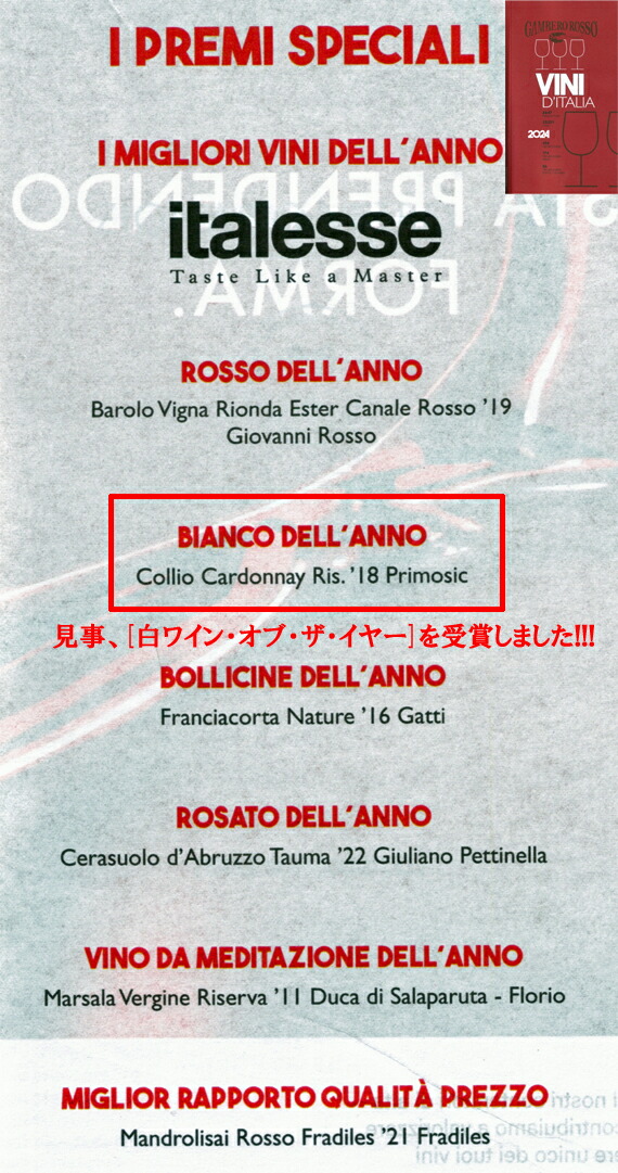 実に、イタリア最高評価誌[ガンベロ・ロッソ]で、