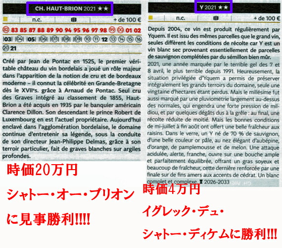 さらには、あのソーテルヌ最高峰[ディケム]が造りし、時価4万円もの辛口白ワイン[イグレック・デュ・ディケム]にも見事勝利して、