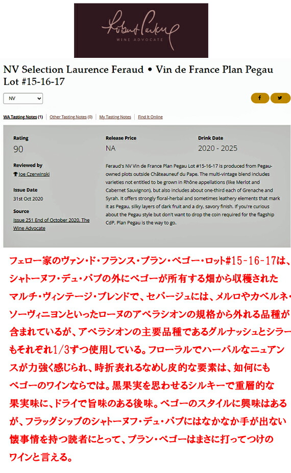 (Issue 251 End of October 2020, The Wine Advocateより)
