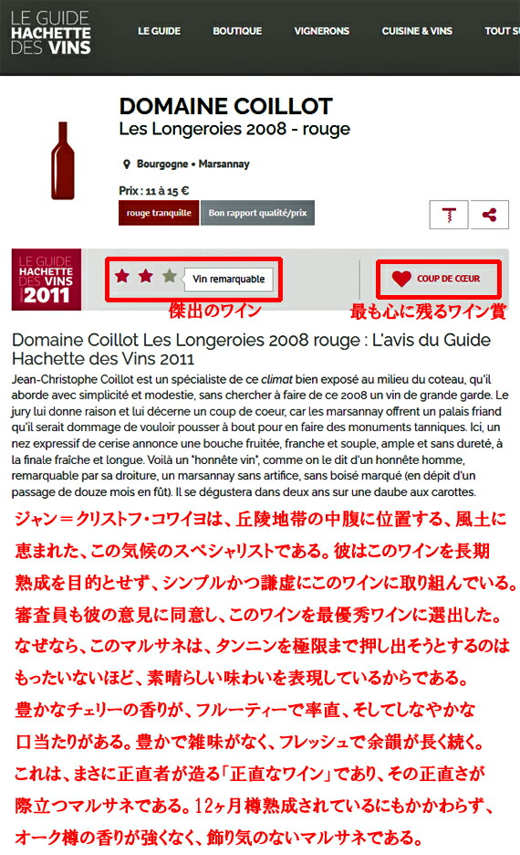 [ドメーヌ・コワイヨ・マルサネ・ロンジュロワ 2022]