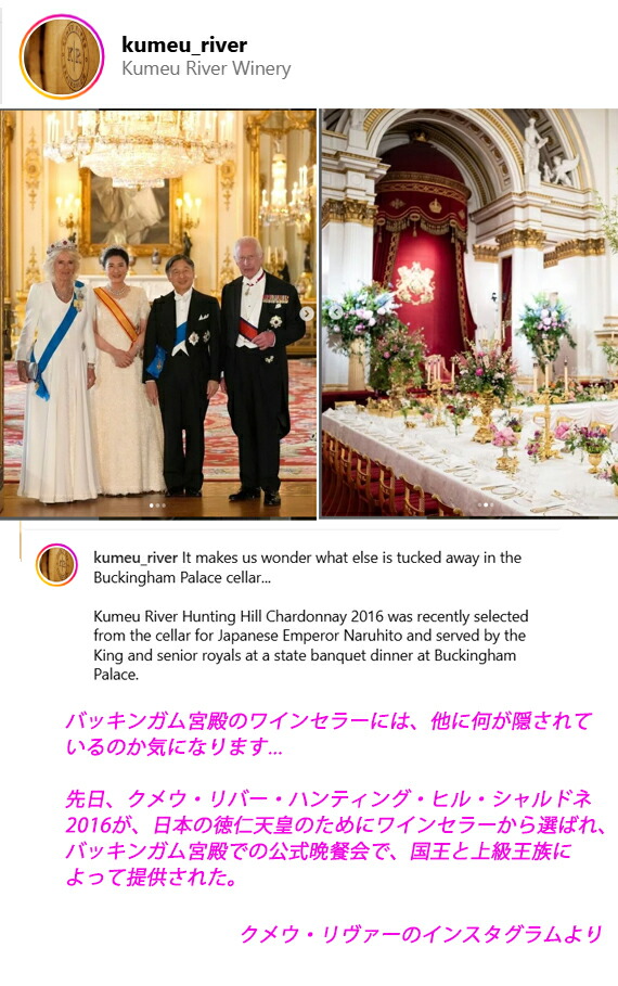 バッキンガム宮殿の晩さん会で天皇皇后両陛下に供された名門[クメウ・リヴァー]!!