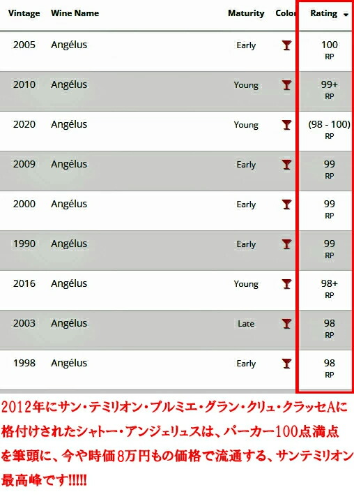 ・クラッセAに格付けされ、パーカー100点満点を筆頭に、