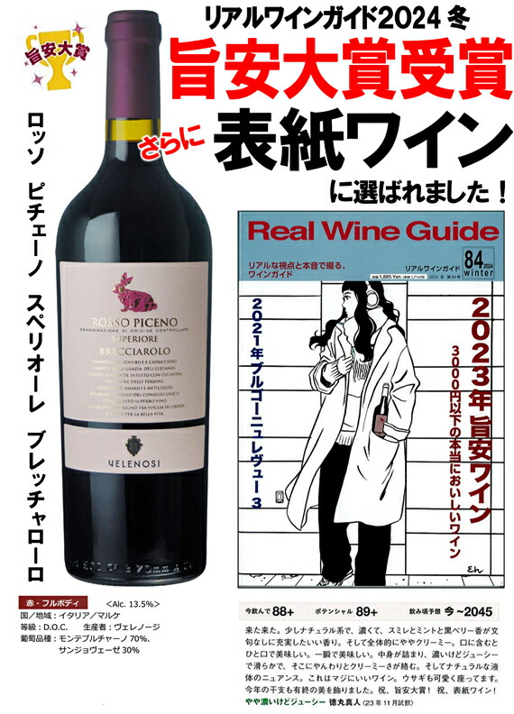 辛口評価誌[リアルワインガイド]の【旨安大賞】に見事輝き、しかも、2023年を代表するワインとして表紙を飾った、まさに[年間最高【旨安大賞】ワイン]!!!!!
