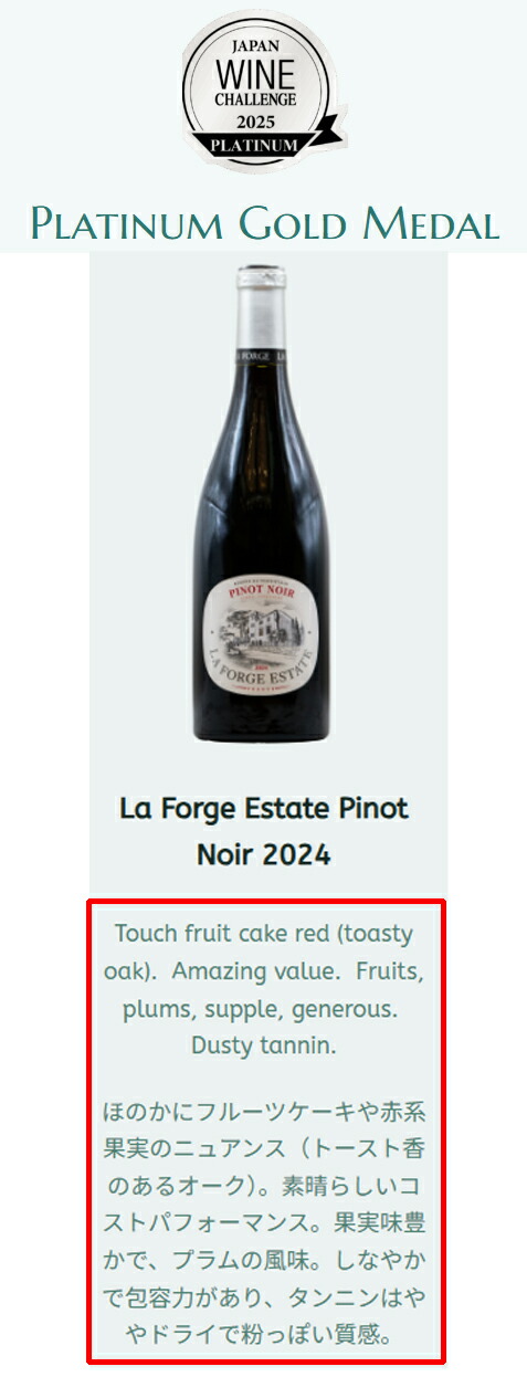 しかも、最も激戦となった、ピノ・ノワール部門で、唯一の【プラチナ大賞】獲得となった【世界最高のピノ・ノワール】!!!!