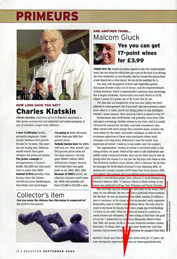 同じく[デキャンター]誌の2006年9月号に登場し、
