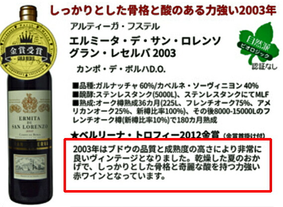 エルミータ・デ・サン・ロレンソ グラン・レセルバ 2003